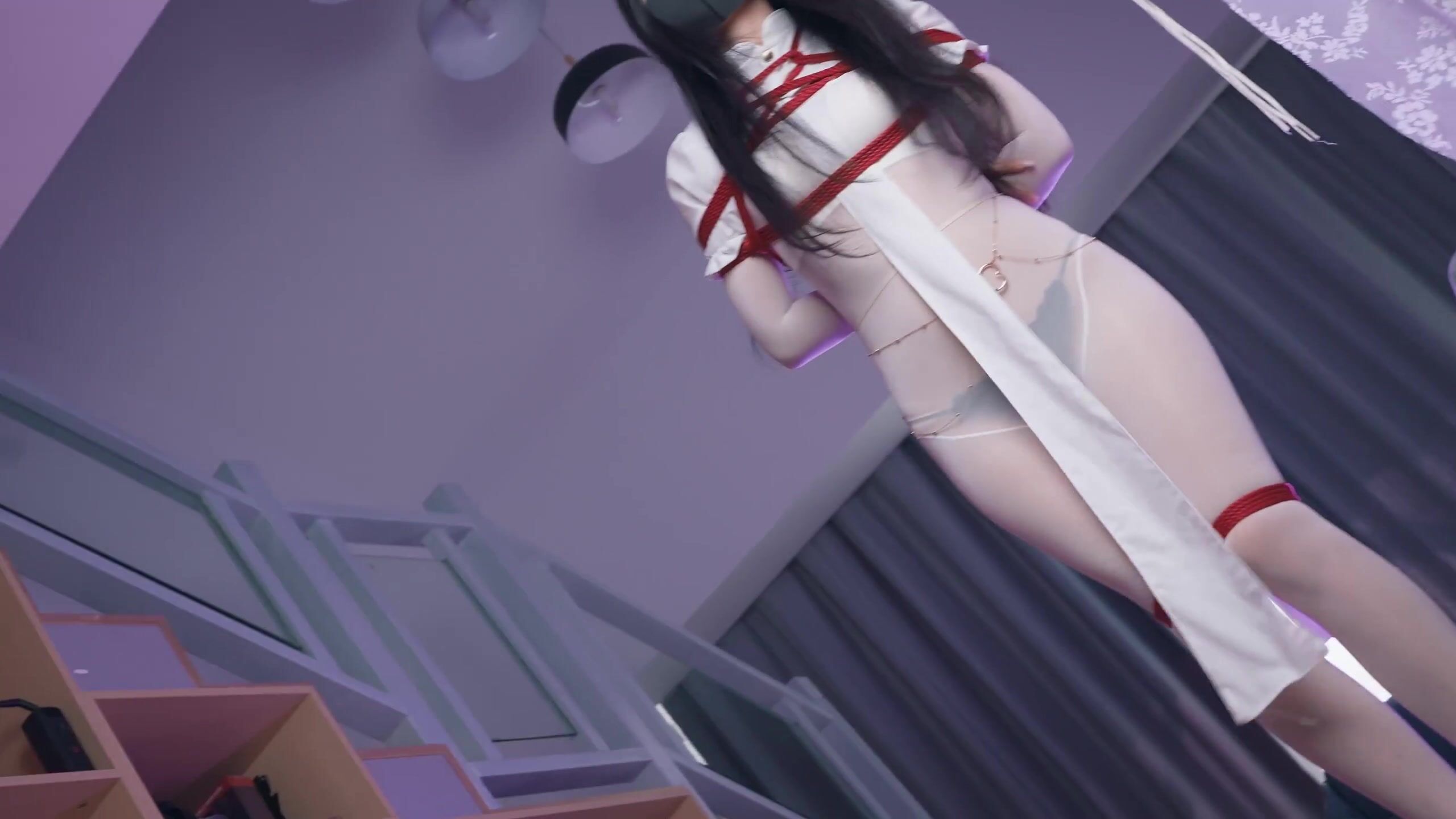 【悠米】《神圣修女被绑记》3 修女身着白色全包丝袜和12cm的高跟吊着罚站,还要被迫看着镜子里被玩弄的自己